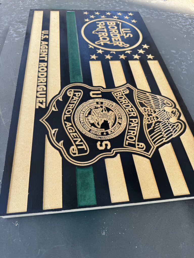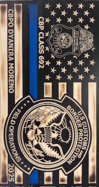 Crafting these unique works brings me great pride. Every flag and plaque represents not only my craftsmanship, but also my respect for the men and women who protect and serve. I strive to produce meaningful, high-quality pieces that families and agencies will proudly display for generations.